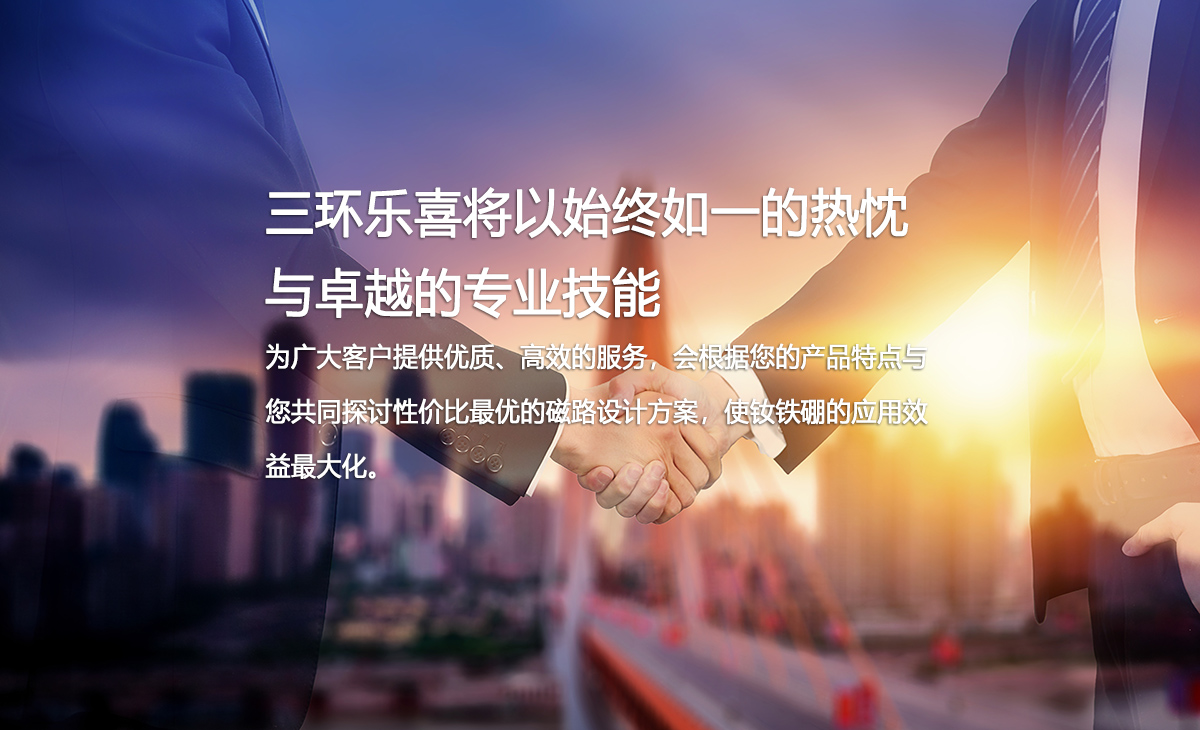 三環(huán)樂喜新材料有限公司,成立于1990年,控股股東中科三環(huán)(股票代碼:000970)為中國稀土永磁材料產業的代表企業、全球特大的釹鐵硼永磁體制造商之一。自成立以來,公司一直致力于研發(fā)、生產、銷售中、高品質燒結釹鐵硼,年生產能力超過6000噸,是中科三環(huán)的重要生產基地。